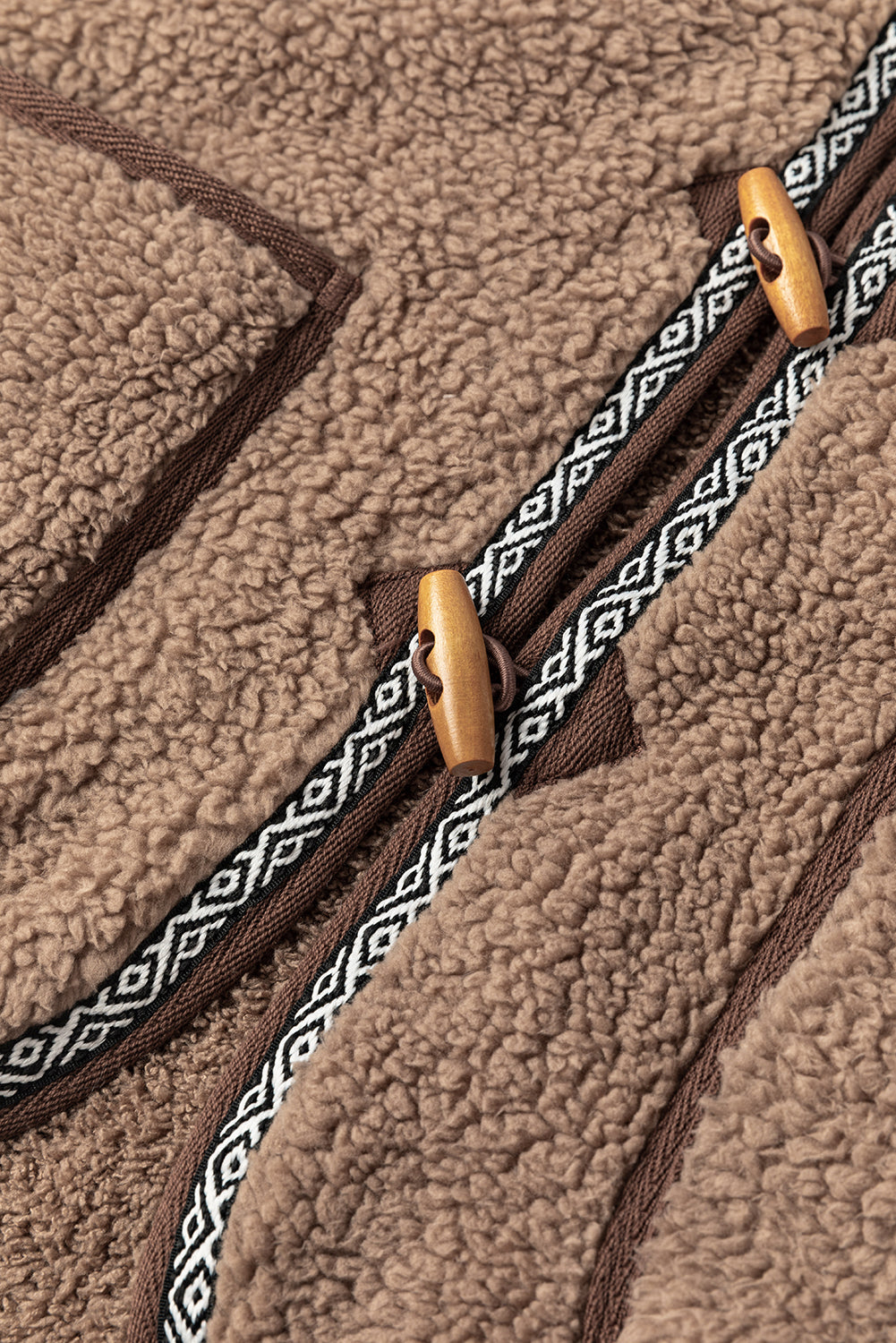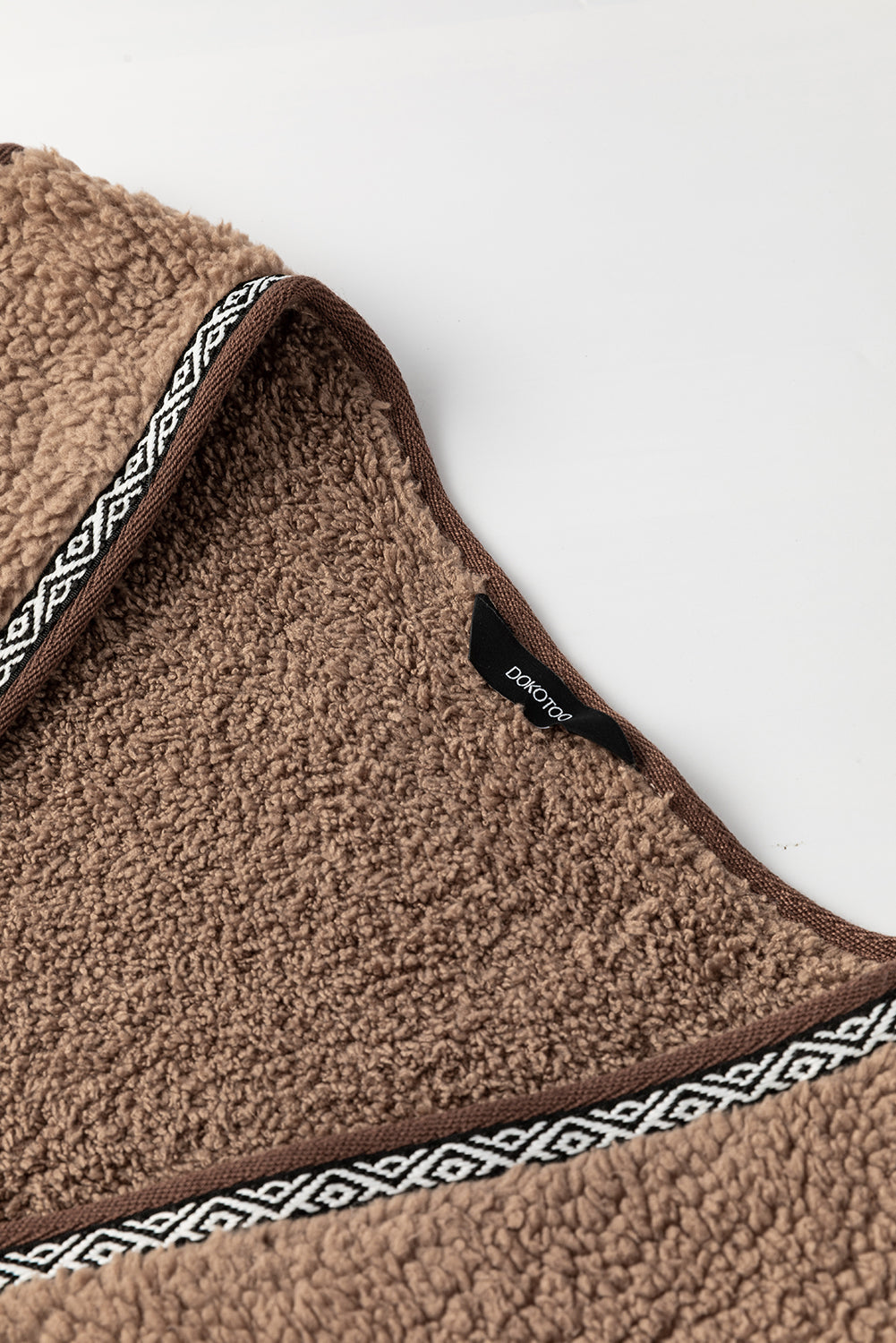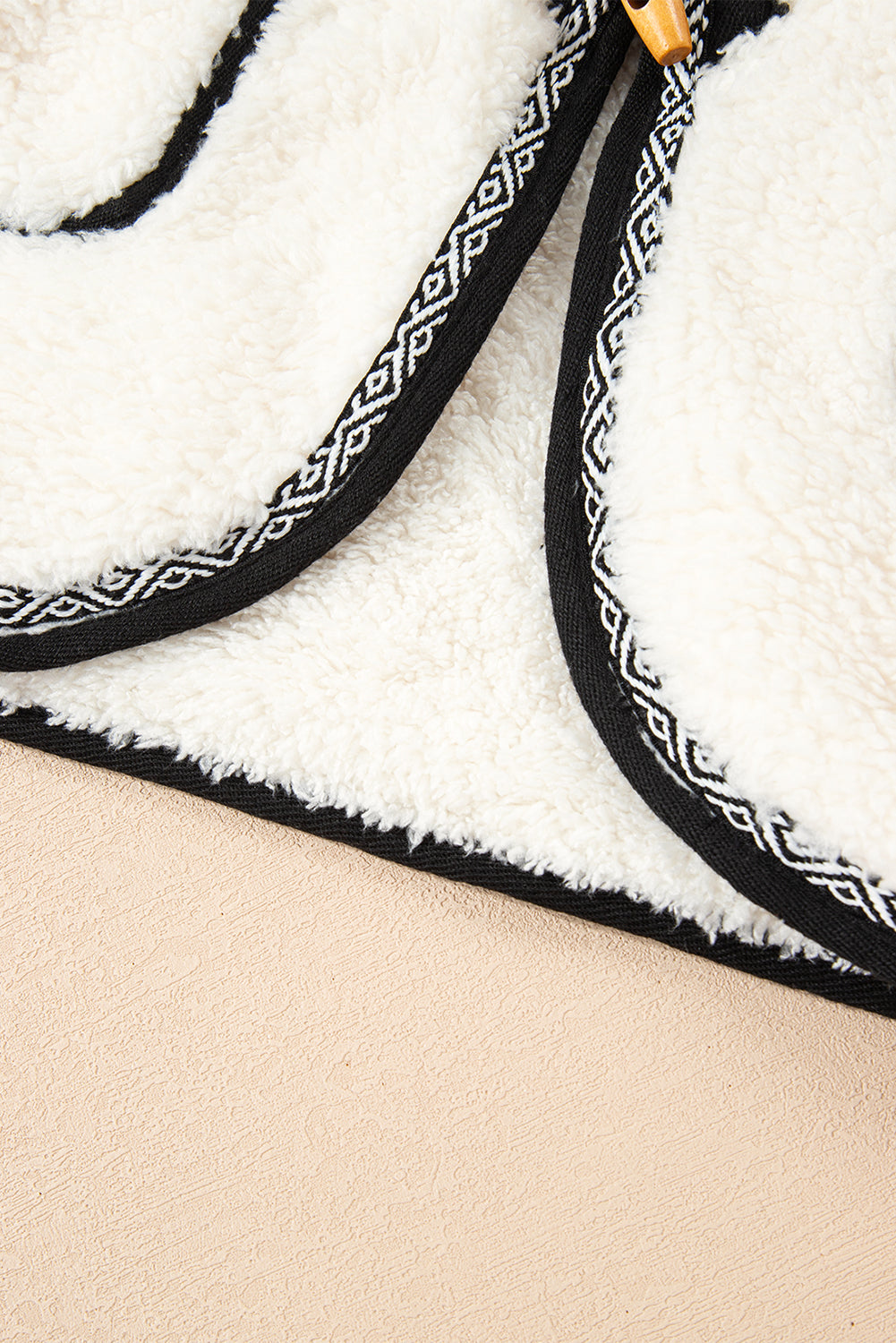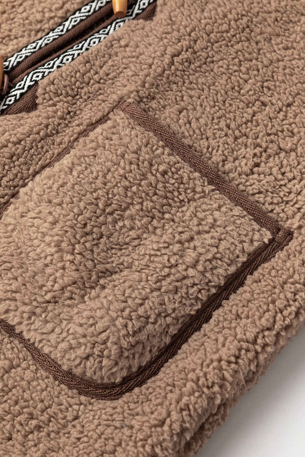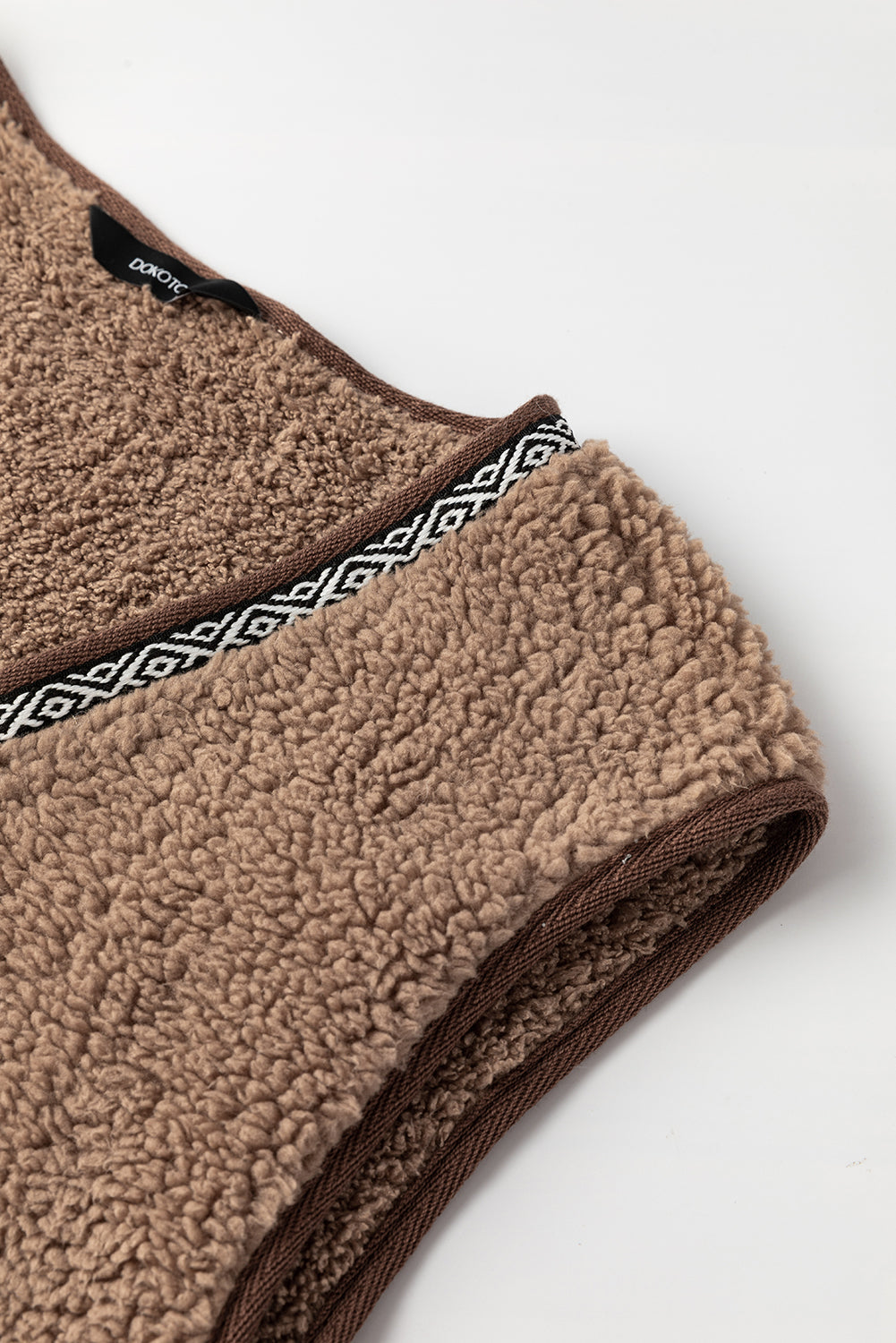 Meet Harper Patch Cartridge toggle Vest—effortless, flattering, and easy to style for everyday life. This fuzzy vest feels like a cozy blanket on your body. It features two hand pockets patched with contrast trim. This v neckline and relaxed silhouette are well-received. The cozy sherpa fabric is very suitable for autumn and winter wear. Buy cozy sherpa vests for women at prices from .