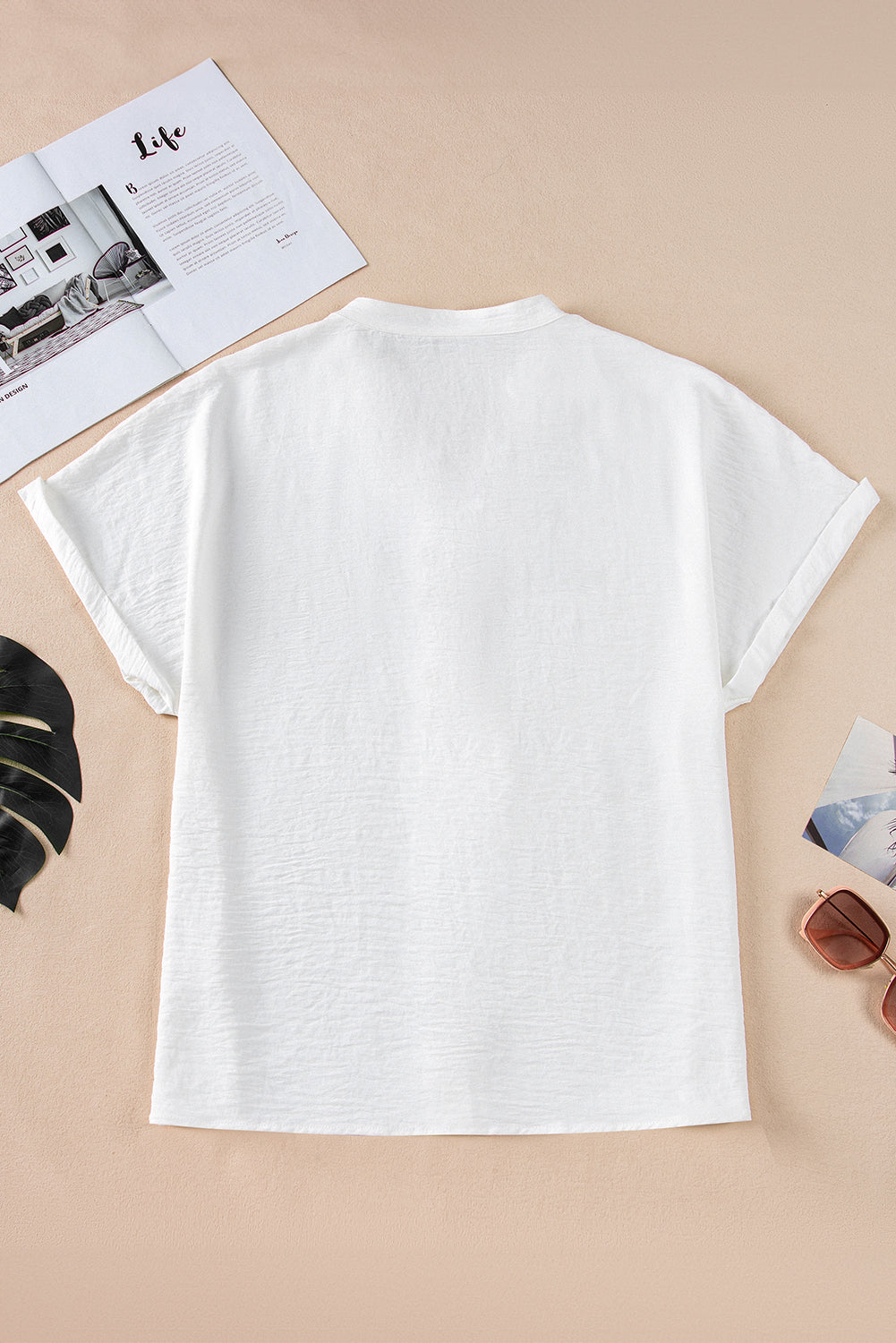 Lilla Notched Neck Batwing Sleeve Lightweight Blouse