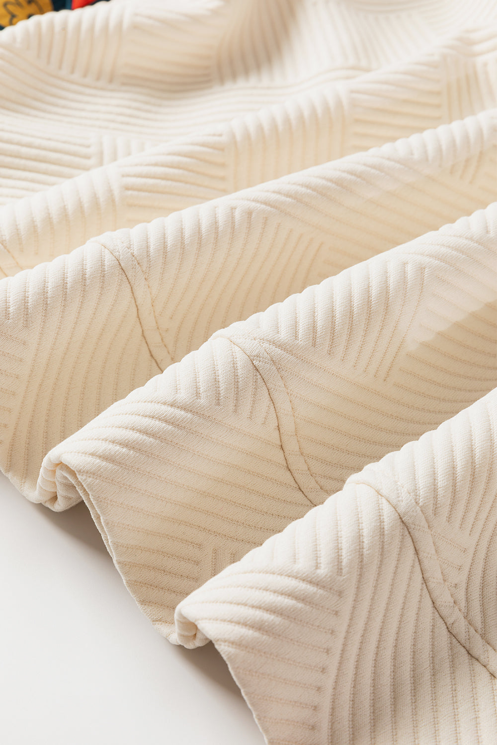White Floral Patchwork Sleeve Textured Plus Size Pullover Top